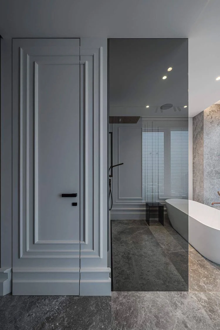 4. **Güzgülər:** Güzgü ilə örtülmüş qapılar ətrafdakı görmə qabiliyyətini qorumaq və otaqları böyütmək üçün istifadə edilən digər seçimdir. Güzgü ətrafdakıları əks etdirdiyi üçün qapı daha az nəzərə çarpır.