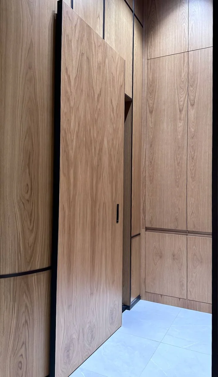 2. **Taxta tonları:** Gizli qapılar üçün taxta tonları seçmək də adi haldır. Bu tonlar otağın əsas dekorasiyası ilə daha yaxşı harmoniya yaratmağa imkan verir və təbii hiss yaratmağa kömək edir.